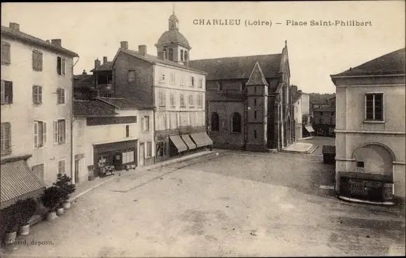 Ak Charlieu Loire, Place Saint Philibert, Église