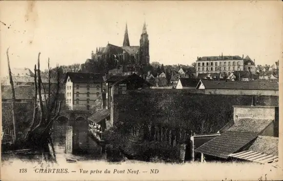 Ak Chartres Eure et Loir, Vue prise du Pont Neuf