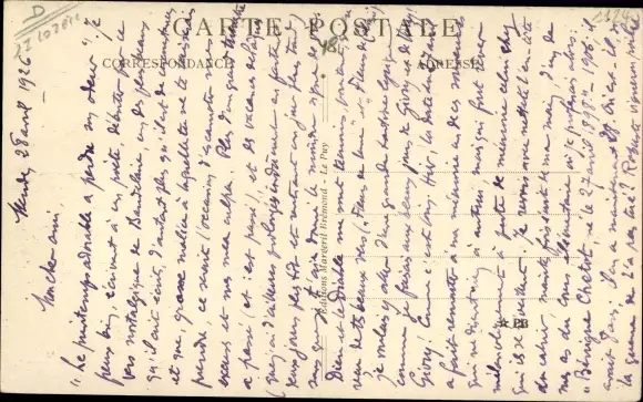 ungelaufen, Rückseite beschrieben, datiert 1926, sehr guter Zustand