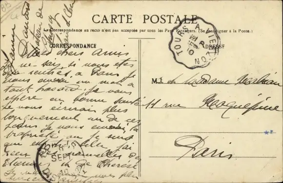 gelaufen 1910, fleckig, sonst guter Zustand