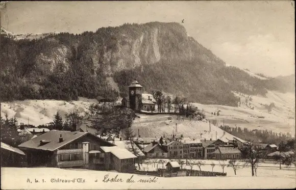 Ak Château d'Œx Oex Kanton Waadt, Gesamtansicht, Winter