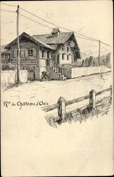 Ak Château d'Œx Oex Kanton Waadt, Route, Haus