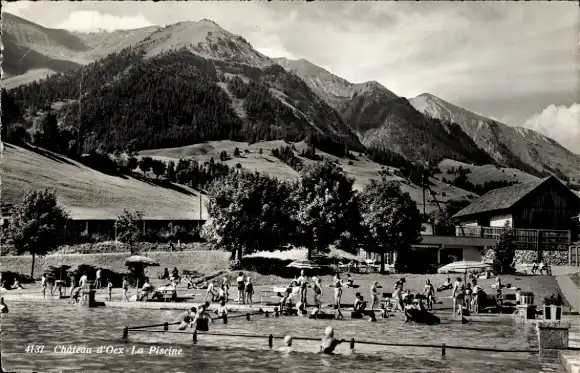 Ak Château d'Œx Oex Kanton Waadt Schweiz, Schwimmbad