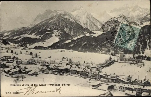 Ak Château d'Œx Oex Kanton Waadt Schweiz, Winterpanorama