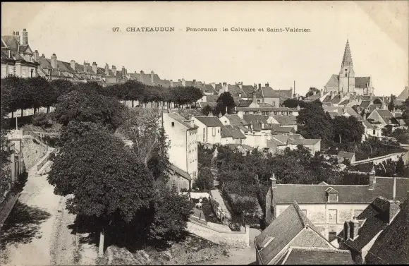 Ak Châteaudun Eure et Loir, Panorama, Calvaire, Saint Valerian