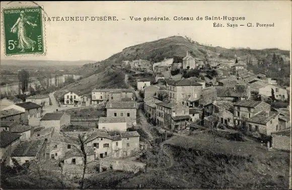 Ak Chateauneuf d'Isere Ardèche, Vue générale, Coteau de Saint Hugues