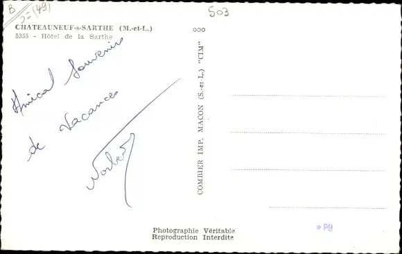 Ak Chateauneuf sur Sarthe Maine-et-Loire, Hotel de la Sarthe
