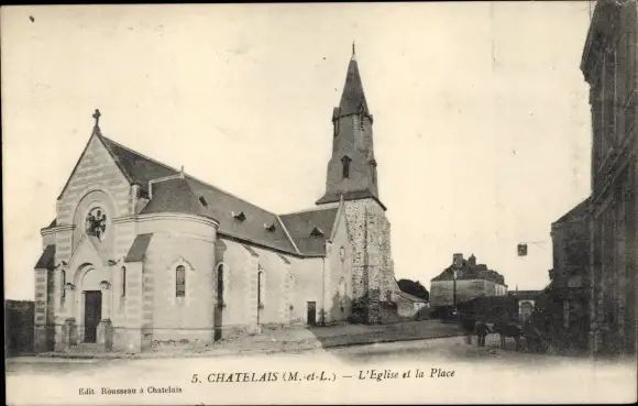 Ak Chatelais Maine et Loire, L'Église et la Place