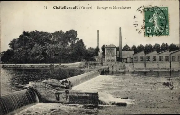Ak Châtellerault Vienne, Barrage, Manufacture