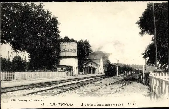 Ak Châtenois Vosges, La Gare, Arrivée d'un train