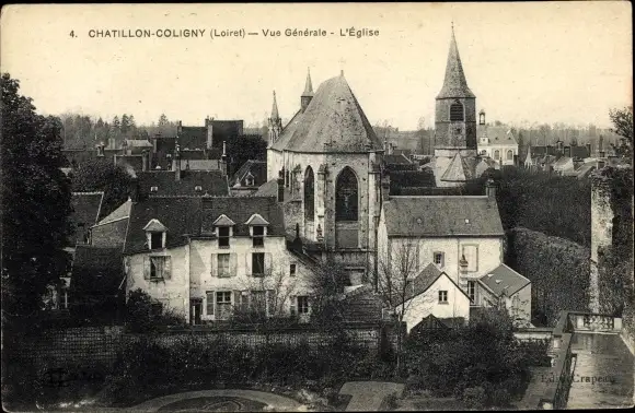 Ak Chatillon Coligny Loiret, Vue générale, Eglise