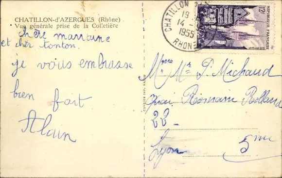 Ak Chatillon d'Azergues Rhône, Vue generale prise de la Colletiere