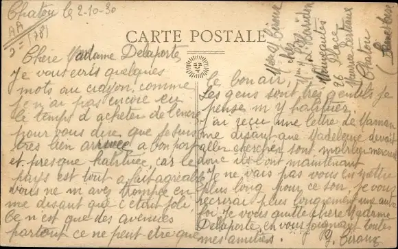 ungelaufen, datiert 1930, Rückseite beschrieben, sehr guter Zustand