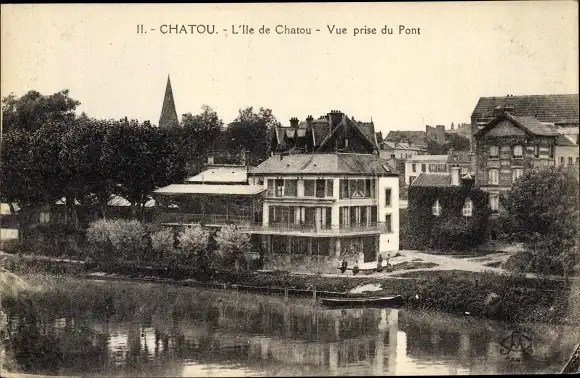 Ak Chatou Yvelines, L'Ile de Chatou, Vue prise du Pont