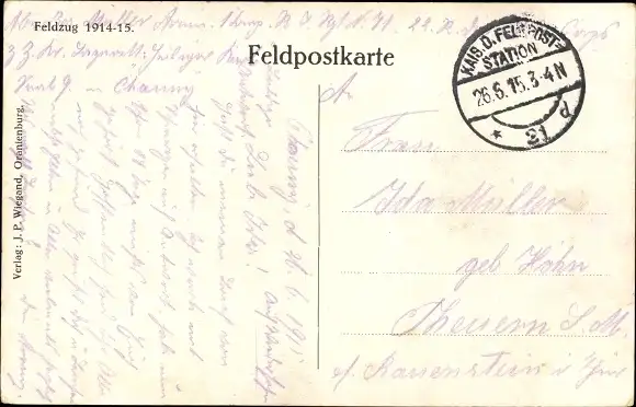 Zustand, siehe Scan, gelaufen, 1915 - ca 14 cm X 9 cm