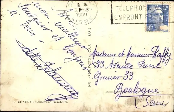Ak Chauny Aisne, Boulevard Gambetta, Straßenpartie im Ort, Häuser, Auto