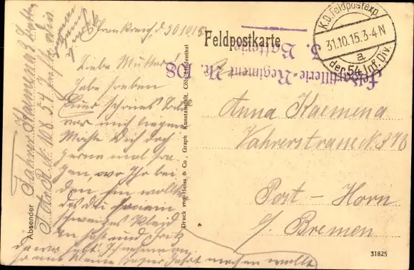 Zustand, siehe Scan, gelaufen, 1915 - ca 14 cm X 9 cm