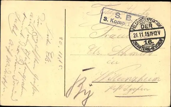 Zustand, siehe Scan, gelaufen, 1915 - ca 14 cm X 9 cm