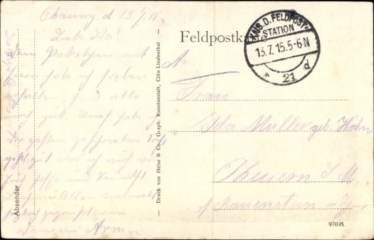 Zustand, siehe Scan, gelaufen, 1915 - ca 14 cm X 9 cm