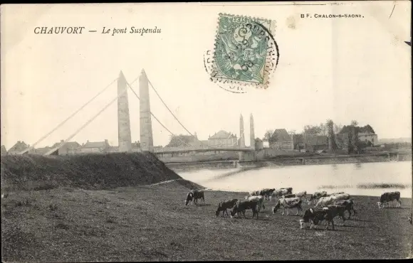 Ak Chauvort Allerey sur Saône Saône et Loire, Le pont Suspendu