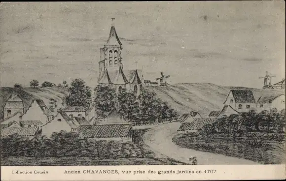 Ak Chavanges Aube, Blick von den großen Gärten im Jahr 1707