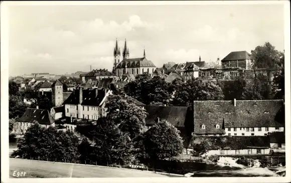 Ak Cheb Eger Reg. Karlsbad, Blick auf Stadt und Kirche