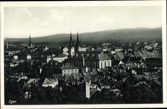 Ak Cheb Eger Reg. Karlsbad, Blick auf den Ort, Kirche, Häuser
