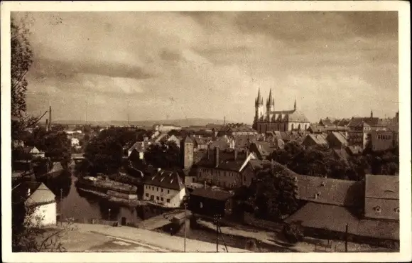 Ak Cheb Eger Reg. Karlsbad, Gesamtansicht der Stadt, Blick zur Kirche