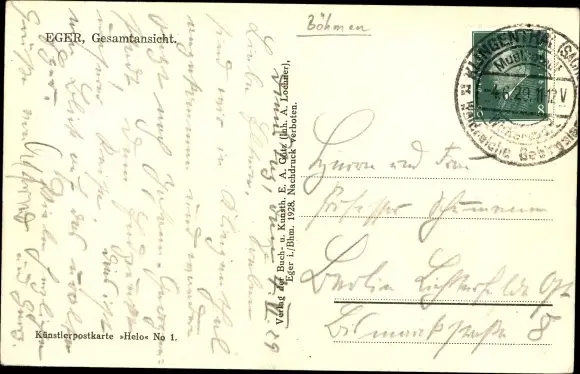 Ansichtskarte, Postkarte, Karlsbad, Karlovy Vary, Cheb, Eger, Kirche