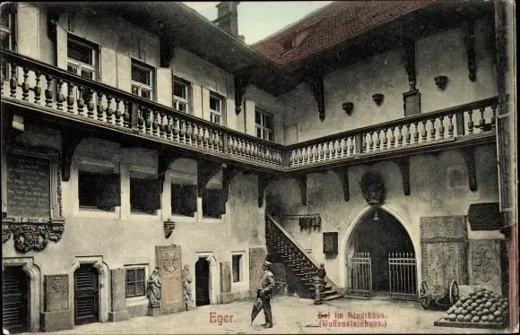 Ak Cheb Eger Reg. Karlsbad, Hof im Stadthaus, Wallsteinhaus