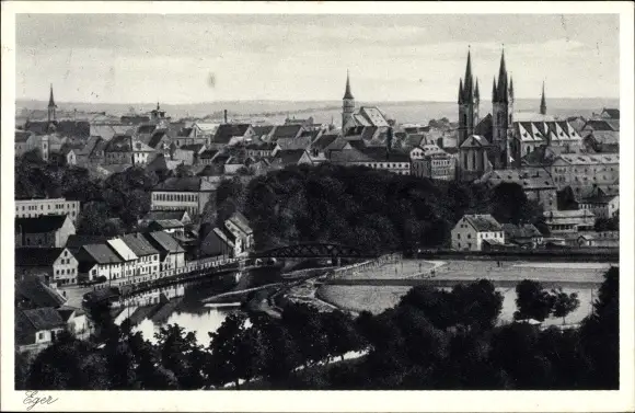 Ak Cheb Eger Region Karlsbad, Blick auf die Stadt, Kirche