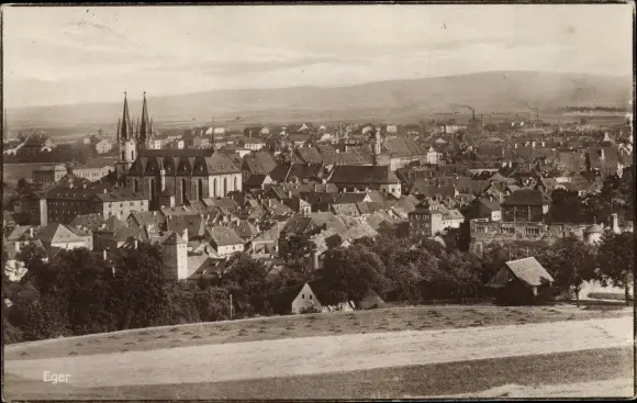 Ak Cheb Eger Region Karlsbad, Gesamtansicht, Kirche