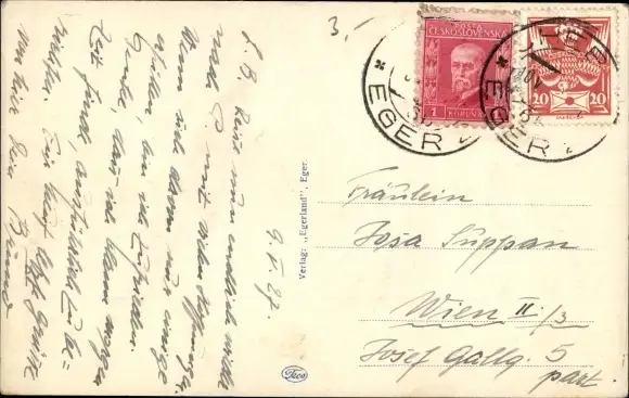 Ansichtskarte, Postkarte, Karlsbad, Karlovy Vary, Cheb, Eger, Kirche