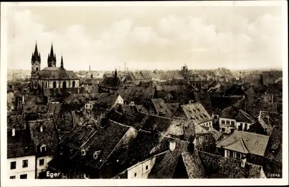 Ak Cheb Eger Region Karlsbad, Panorama, Kirche