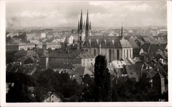Ak Cheb Eger Region Karlsbad, Panorama, Kirche