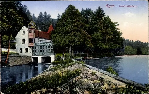 Ak Cheb Eger Region Karlsbad, Restaurant Insel Mühlerl