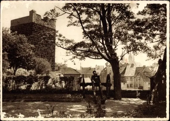 Ak Cheb Eger Region Karlsbad, Schwarzer Turm mit Feldkanone, Burg