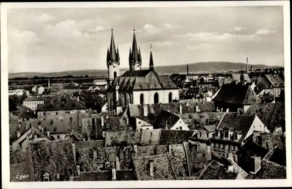 Ak Cheb Eger Region Karlsbad, Teilansicht, Vogelschau