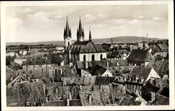 Ak Cheb Eger Region Karlsbad, Teilansicht, Vogelschau