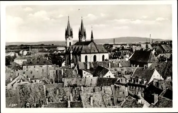 Ak Cheb Eger Region Karlsbad, Teilansicht, Vogelschau
