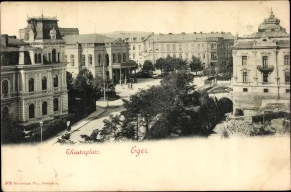 Ak Cheb Eger Region Karlsbad, Theaterplatz
