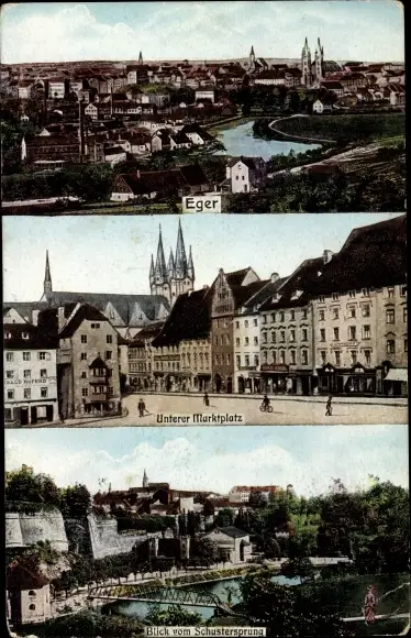 Ak Cheb Eger Region Karlsbad, Unterer Marktplatz, Blick vom Schustersprung