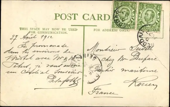 Zustand, siehe Scan, gelaufen, 1912 - ca 14 cm X 9 cm