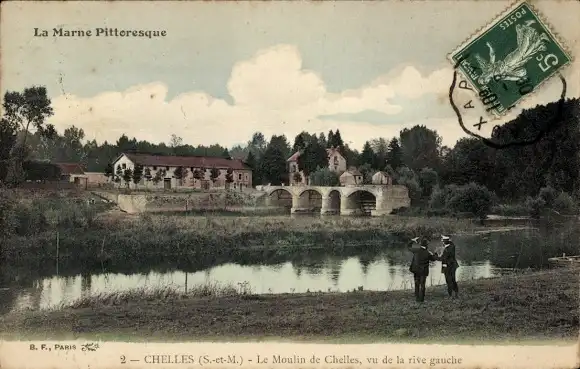 Ak Chelles Seine-et-Marne, Le Moulin de Chelles, vu de la rive gauche