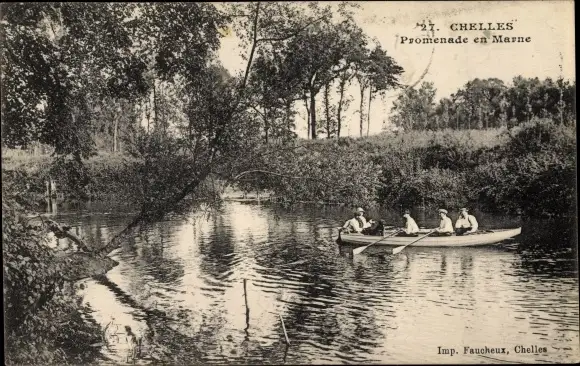 Ak Chelles Seine et Marne, Promenade en Canoe