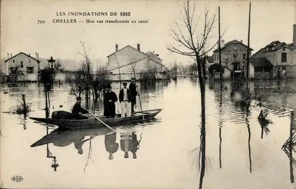 Ak Chelles Seine-et-Marne, Une rue transformee en canal