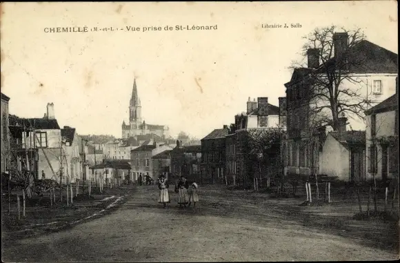 Ak Chemillé Maine et Loire, vue prise de St Léonard, trois filles