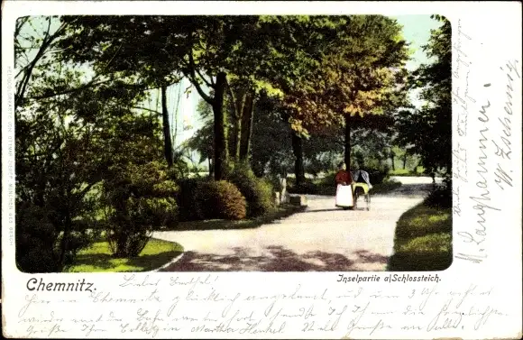 Ak Chemnitz, Inselpartie am Schlossteich, Frau mit Kind