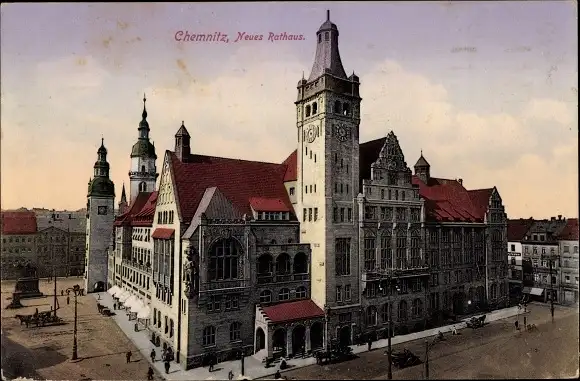 Ak Chemnitz Sachsen, Ansicht des Neuen Rathauses am Marktplatz