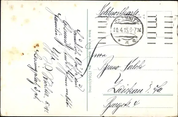 Zustand, siehe Scan, gelaufen, 1915 - ca 14 cm X 9 cm